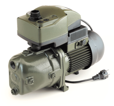 Accroche : Pompe monocellulaire auto-amorçante auomatique. Protection contre le manque d'eau intégrée.