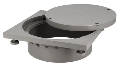 Tampon plein verrouillable avec cadre PVC, raccordement femelle en extrémité de rehausse de boîte de branchement.