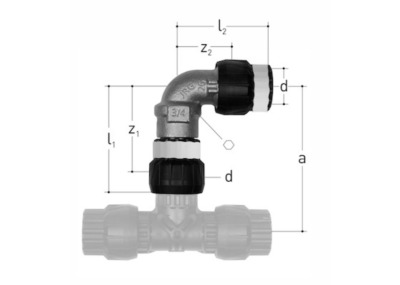 En matière synthétique, technologie à 2 couches, revêtement interne en PPSU et manteau externe en PA, raccords de serrage à rebord MT en matière synthétique, pour tubes JRG Sanipex d16/d20 et JRG Sanipex MT