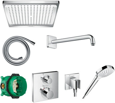 Comprend : thermostatique de douche, corps dencastrement, support de douche, bras de douche, coude de raccordement, flexible de douche