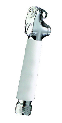 Marque DELABIE type Douchette à poussoir en laiton chromé et ABS blanc, réf. 434182 ou équivalent approuvé.