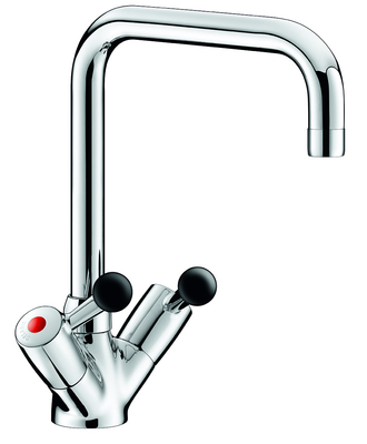 Mélangeur monotrou sur plage avec bec tube orientable.
