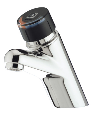 Le bouton de commande ergonomique permet simultanément l'écoulement de l'eau par simple pression sur le bouton poussoir et le réglage de la température par rotation de ce dernier. Equipé d'une butée de température pré-réglée inviolable et ajustable.