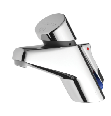 Déclenchement de l'écoulement d'eau par simple pression sur le bouton poussoir. Avec réglage de débit et de temporisation inaccessible aux usagers. Avec système antiblocage.