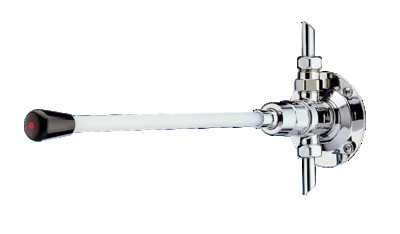 Sans contact manuel, les solutions à commande au genou garantissent une hygiène parfaite. Une fermeture temporisée lente évite les coups de bélier. Existe avec commande de longueur 390 mm, 490 mm et 565 mm.