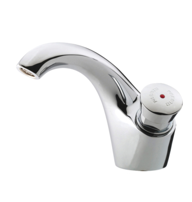 Le robinet simple sur plage pour lavabo permet lécoulement deau par simple pression sur le bouton-poussoir. L'eau s'arrête automatiquement après une temporisation réglée en usine. Avec réglage de débit 4 positions.