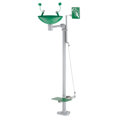 Lave-yeux de sécurité sur colonne à commandes manuelle et au pied comprenant :