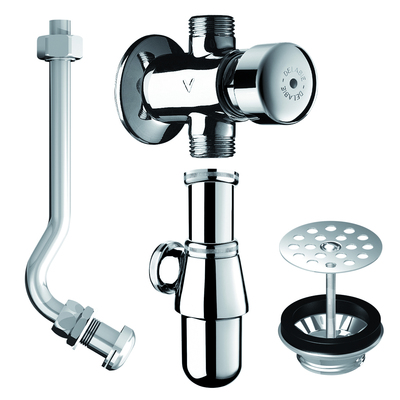 Comprenant : un robinet droit TEMPOSTOP 777000, une tubulure d'alimentation 754524, une bonde 580000 et un siphon 517000.