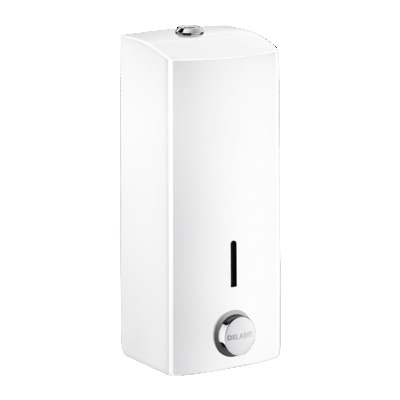 Distributeur mural de savon liquide. Dimensions : 89x104x252 mm, contenance 1 litre.