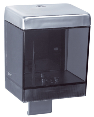 Visualisation du niveau du savon grâce au plastique transparent fumé.