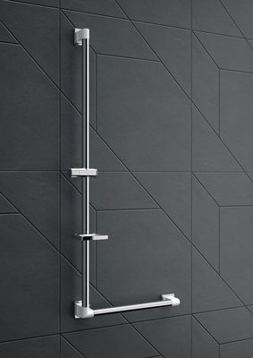 Main courante de douche en L Rugao Duo White, garantie à vie, acier inoxydable, Ø 32mm, réf 12015WH-LS de marque AKW ou techniquement équivalent approuvé. Dimension 462x1200mm, 3 zones de fixation, platines blanches RAL9003 avec 4 trous et cache de fi nition chromé. Charge maximale (pression statique) : 150kg.