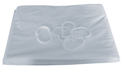 Rideau de douche Hauteur 1800 mm - Largeur 900, 1200, 1500 ou 1800 mm, oeillets laiton blanc, ourlet plombé.