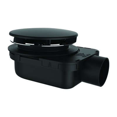 Bonde ultra-plate pour receveur de douche D=90 mm, SMART BONDE, capot ABS noir mat D=116 mm, hauteur 48 mm, sortie horizontale D=40 à coller, joint autofix double, garde d'eau 25mm, Technologies Space Fit et Cleany Quick, pour receveur épaisseur > 6