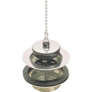 Partie supérieure de bonde en acier inoxydable, partie inférieure de bonde en laiton nickelé mat, bouchon de bonde (avec enjoliveur), chaînette à billes chromée avec support de chaînette.
