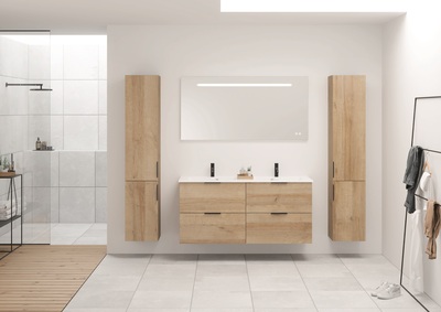 Descriptif : Meuble mélaminé 4 tiroirs double vasque:- 2 dimensions:118 cm 136 cm- 4 finitions:Blanc MatGraphite MatTerracotta MatChêne doréGarantie: 5 ans