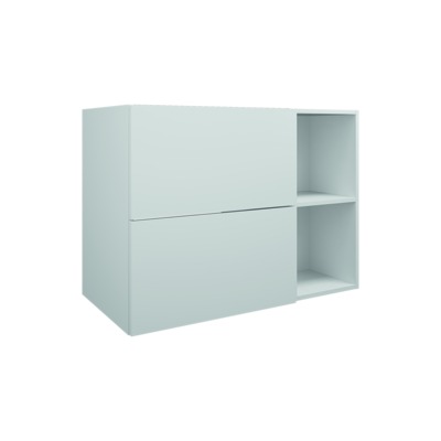 Meuble sous vasque mélaminé 2 tiroirs avec niche pour plan de toilette asymétrique.